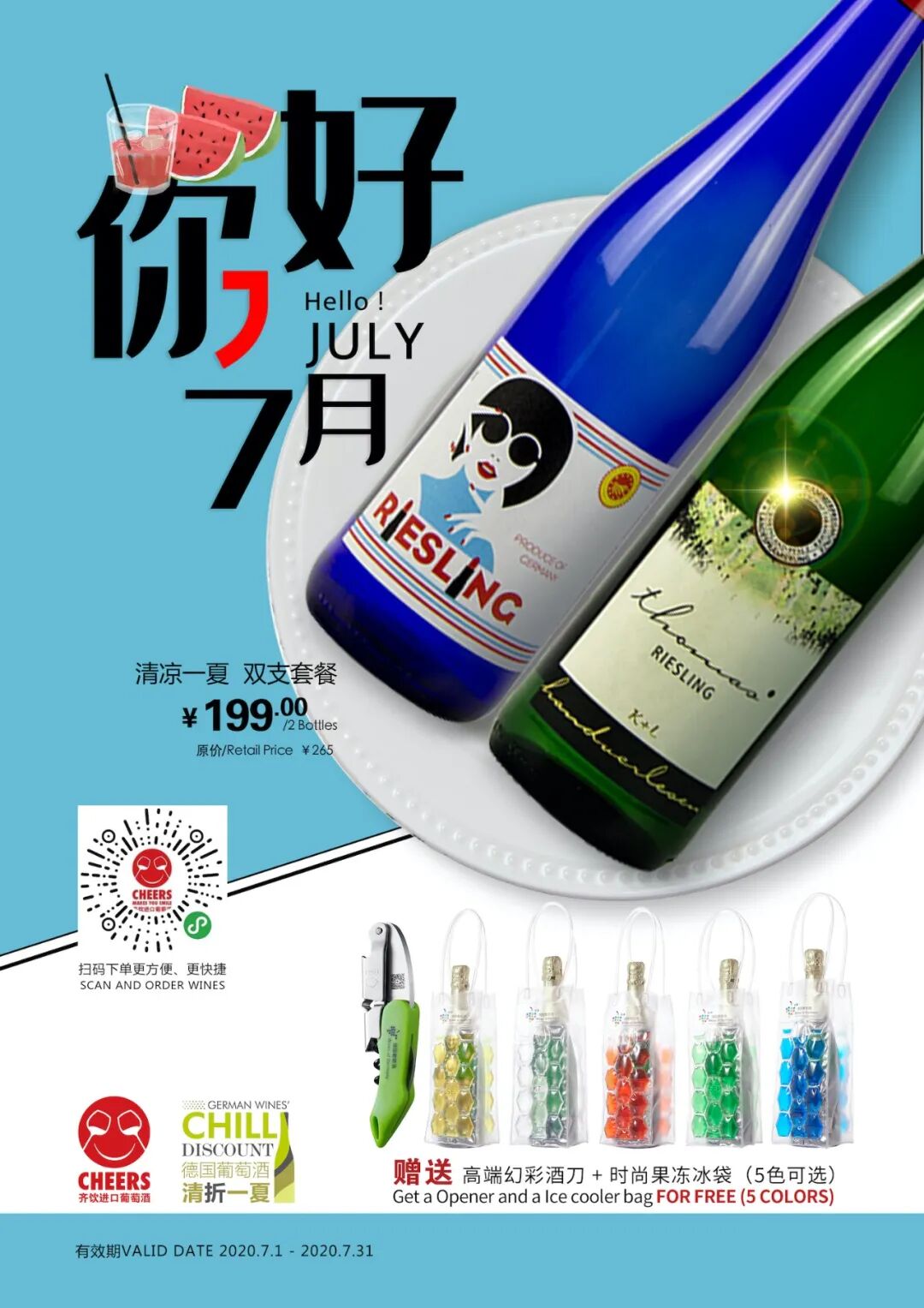 同时,由德国葡萄酒协会主办每年一度的世界雷司令周仍在火热进行中:即日起至7月31日,购买伊人雷司令+托马斯雷司令各一瓶,即可享受原价265 现价199元的优惠。