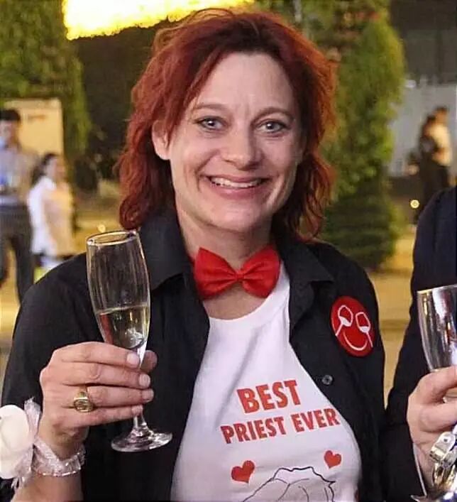 43. Claudia was justice of the peace at the wedding of David Schaumann of CHEERS, declaring him and wife Mingming as Mr and Mrs CHEERS.