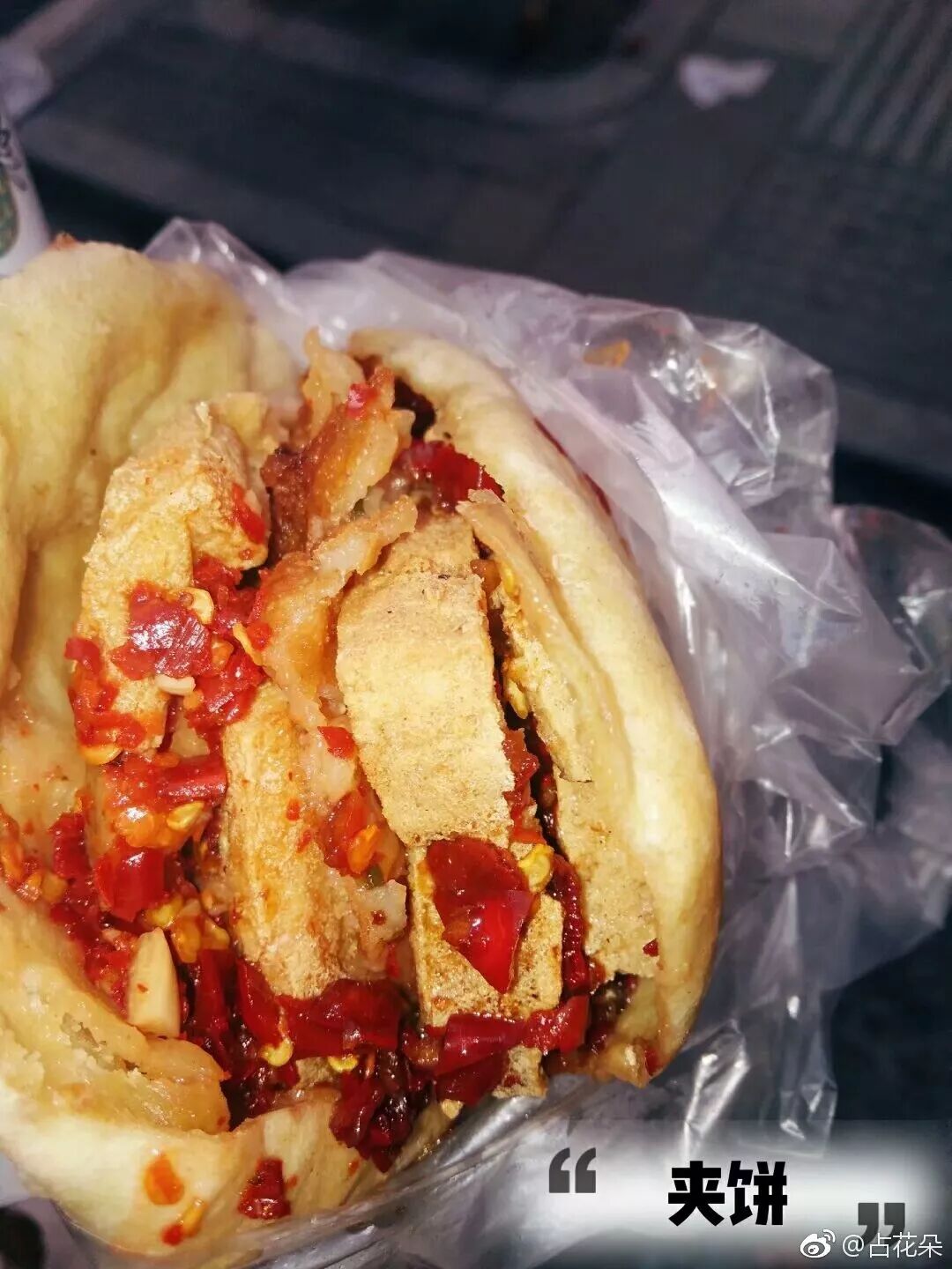 这里的夹饼一定要尝,一个油炸粿、几块臭豆腐、超多辣椒酱夹进烧饼里,哪怕是微辣也能辣得冒汗,但吃着真的超带劲,阿球硬是忍着辣一口口吃光。