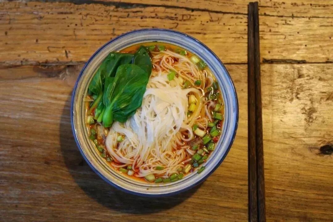 食材、调味品全部自己采购准备,满满的一碗汤粉干端上桌,感觉手稍一不稳,汤就要漫出来。配料有菜有肉,味道就是人们常说的家的味道。
