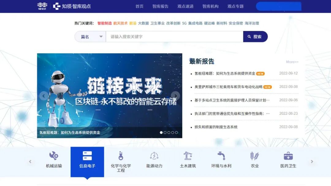 汇聚了全球知名智库工程科技领域咨询报告信息,其中包括中国工程院历年面向社会公开的战略咨询研究报告800余项、全球207个高端智库机构工程科技领域战略咨询研究报告6万余篇,以及与工程科技领域咨询研究有关的资讯、期刊数据5万余条。