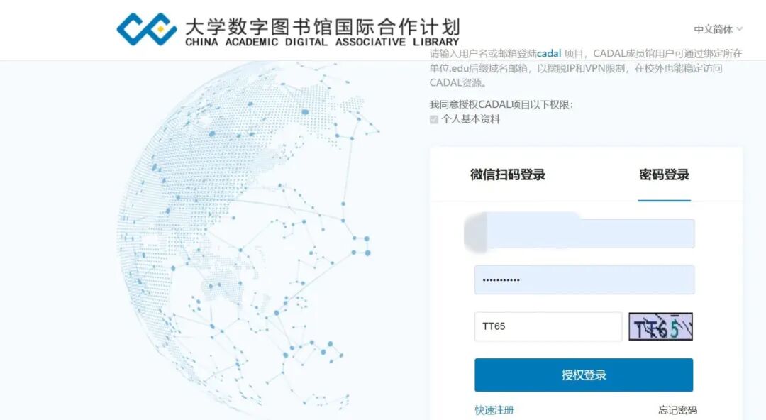 2.用户登录CADAL平台有两种方式可选择:一是通过微信扫码登录,登录时通过知领名片(KID)认证即可使用;二是通过账号密码登录。(如下图)