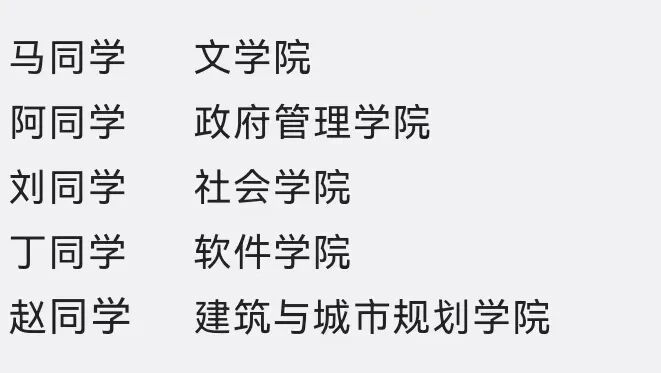10 | 陈同学 | 研究生 | 文学院 | 325 |