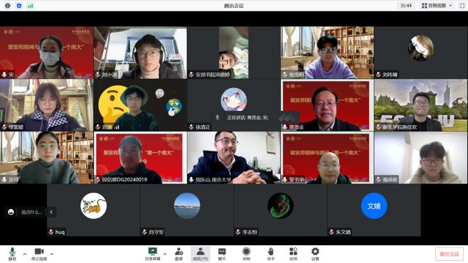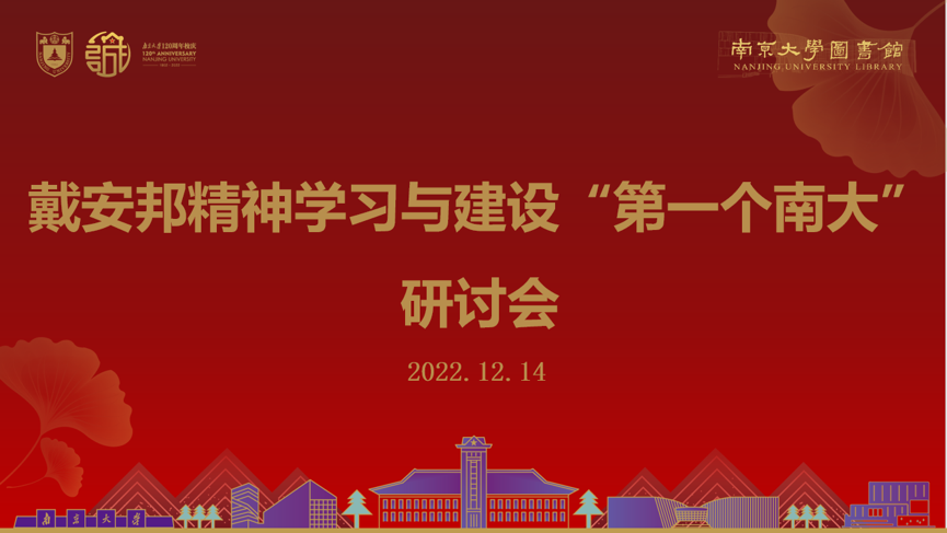 2022年12月14日下午,戴安邦精神学习与建设“第一个南大”研讨会通过线上会议的形式召开。参与该研讨会的嘉宾有:新生学院施佳欢副书记,安邦书院学生事务中心吴可主任,化学化工学院黎书华院长、李育佳副院长,肖守军教授,民盟南京大学委员会周东山常务副主委,以及安邦书院和化学化工学院的学生代表。研讨会由南京大学图书馆黄贤金馆长主持。
