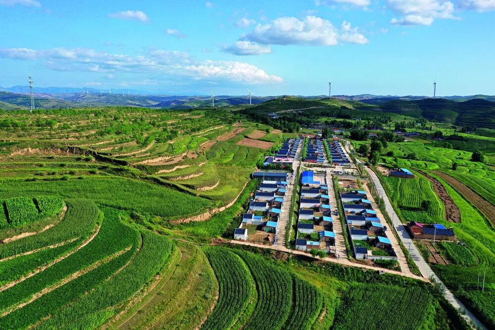 ▲2020年8月13日,宁夏西吉县偏城乡上马村。白墙灰顶整齐划一的移民新村。脱贫攻坚期间,西吉县以及整个宁夏实施了生态移民搬迁,政府将居住在生活不便的山里的群众搬迁到条件较好的乡镇及县城周边或者银川平原地区,改善群众居住及生活条件。同时,山区的生态环境得以修复和改善。