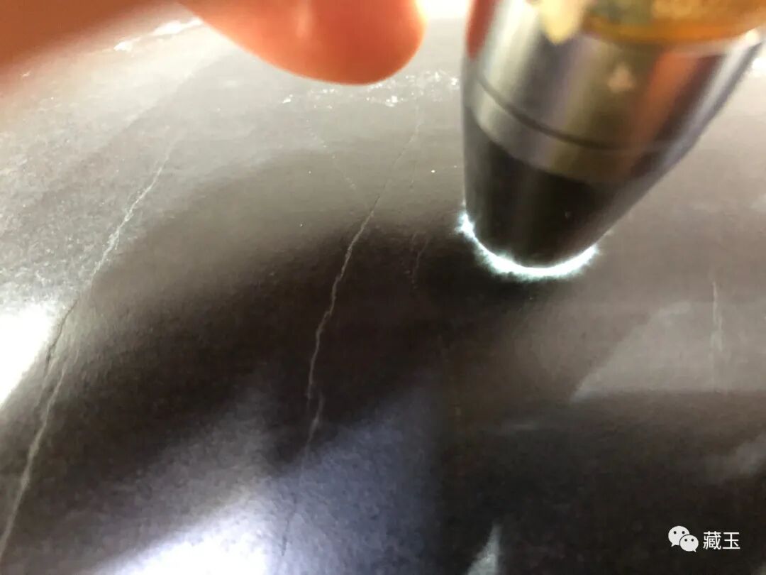 有很多与墨玉看起来很像,但打灯几乎不透,可能是因为透闪石程度不够,或者石性特别重等原因,遇到这类料子就要敬而远之了。