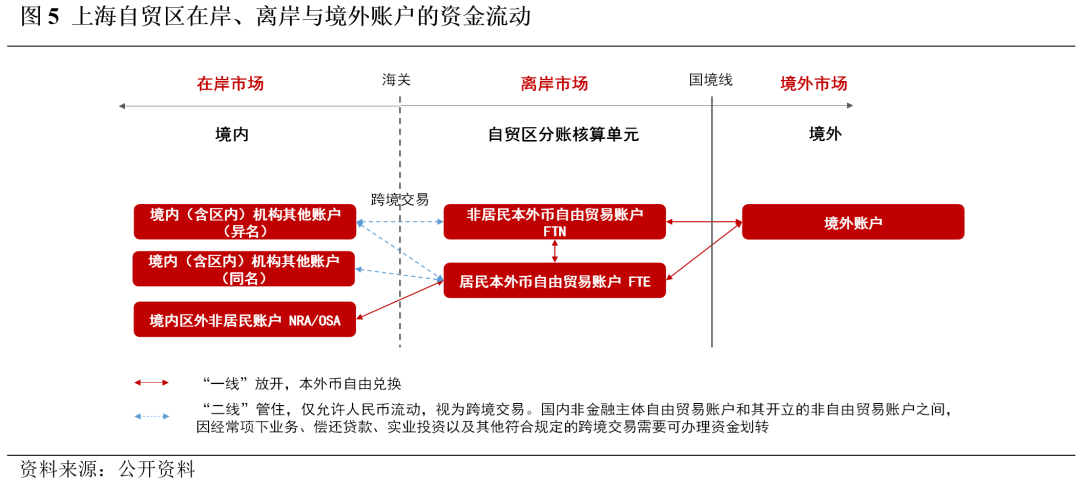 FT账户探索了本外币合一的账户管理体系和金融风险管理新模式。第一,FT账户打破了本外币账户割裂的局面,居民和非居民均可开立。是当前的离岸账户(限外币,非居民)、境外机构境内外汇账户(NRA账户,人民币与外币分设,限非居民)或境内普通账户(人民币与外币分设,只对居民)所无法实现的。FT账户内资金可根据实际业务需求进行兑换,实现了基本可兑换。开立FT账户的境内外主体接受统一规则的账户服务。第二,金融机构按照“标识分设、分账核算、独立出表、专项报告、自求平衡”的要求开展试验区分账核算业务,在记账环节将FT账户与其他账户区分开来。因向FT账户提供兑换服务而产生的本外币头寸应在区内或境外进行平盘。