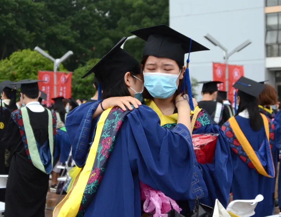 “祝贺你!”“到哪里深造?”“常回母校看看”“谢谢您,老师!”由于疫情防控的需要,现场没有握手和拥抱,但凝望、问候、祝贺、叮嘱和关心不少,毕业生向导师们微笑、致谢、鞠躬,留影时不少毕业生难掩泪水。