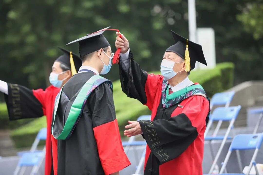 高翅表示,风雨交织是庚子年从春到夏的写照,是离别味道,也是骊歌曲调,但更寓意风调雨顺、情深深雨蒙蒙,“今天的风雨,预示着有更多的阳光和彩虹。”他说:“这个特别的时节,我们爱你!华农爱你!狮山爱你!狮山大爱伴君前行!”他表示,今后每年的毕业典礼,学校将设置2020届毕业专区,为今天未能现场参加毕业典礼的同学预留专属席位。