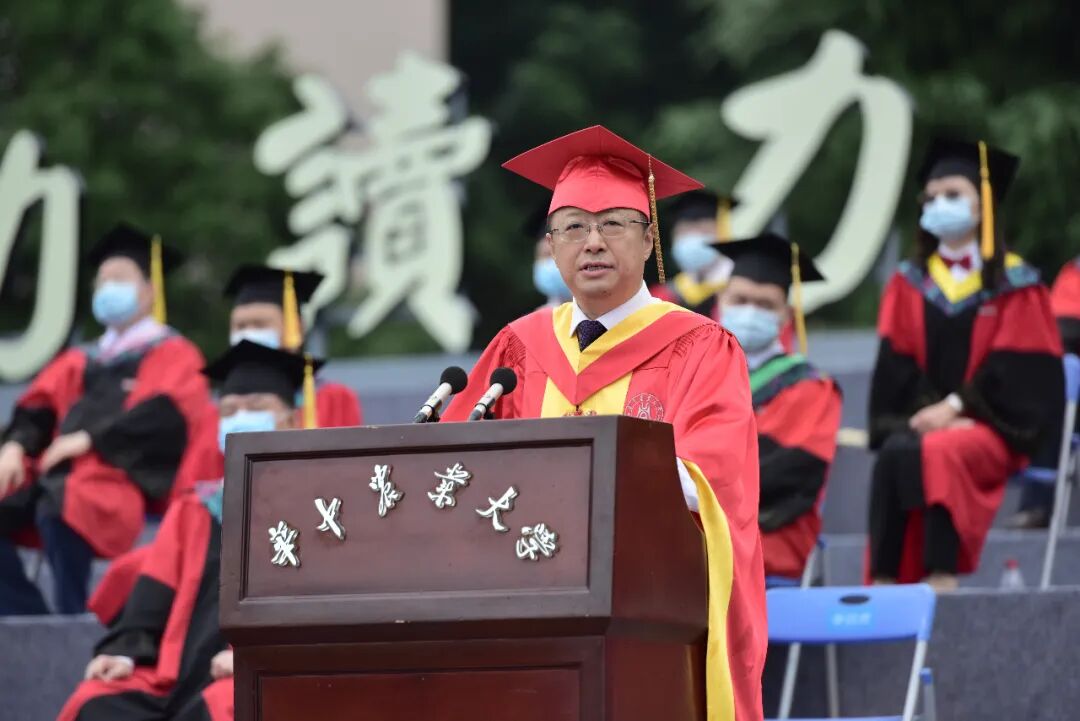 他分享了对学校“不盲从”品质的理解。他说,做到不盲从,要保持坚定的理想信念;做到不盲从,要保持崇高的价值追求;做到不盲从,要保持探寻真理的科学精神;做到不盲从,要保持开放友善的生活态度。他说:“大家马上要走出校园,会面对很多新人新事,你们可能喜欢,也可能不喜欢,但希望你们能够提醒自己保持开放友善之心。只有将个人的“小我”融入国家和社会的“大我”,不盲从才有意义。”他最后希望毕业生们带着不盲从的品格,在未来的征程中如虎添翼、展翅高飞。