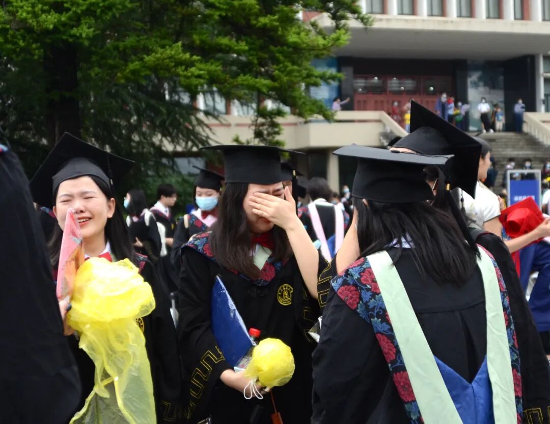 “毕业鼓励”结束,全体起立高唱《华中农业大学校歌》,毕业典礼暨学位授予仪式圆满结束。毕业生手挥“狮山桂冠”,久久不愿离去,不少同学流下了感动的泪水。
