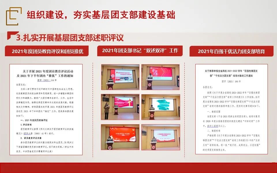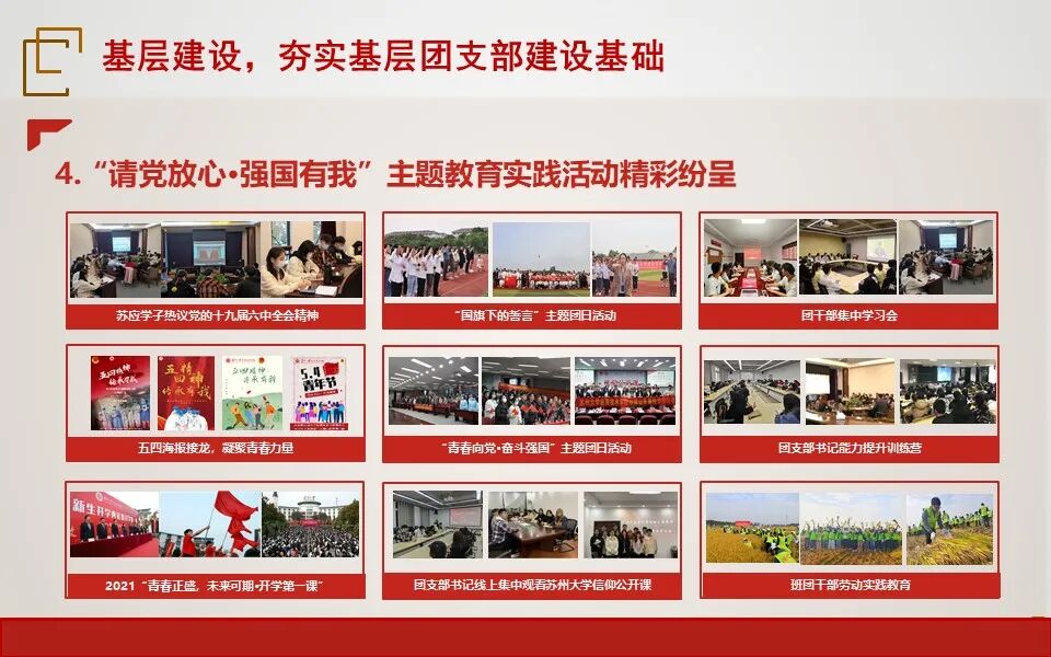 2022年,苏州大学共青团将继续围绕铸魂育人工程、强基赋能工程、启智逐梦工程和润心向善工程,发挥共青团在“铸魂逐梦”工程中的积极独特作用,团结引领广大团员青年,奋进新征程、建功新时代,以优异成绩庆祝建团百年,喜迎党的二十大顺利召开!