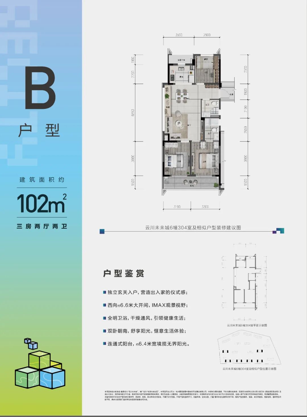 ▲6幢304室建筑面积约102㎡户型装修建议图