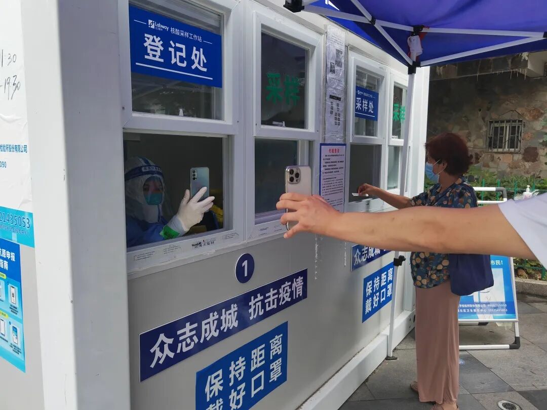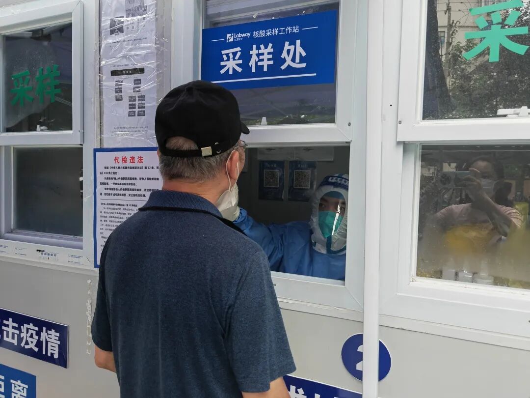 为晨练老人第一时间完成核酸采样
