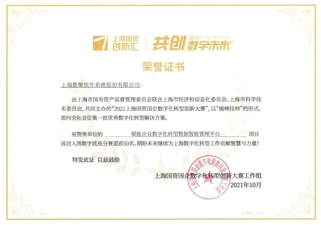 成功入围数字底座分赛道前50名