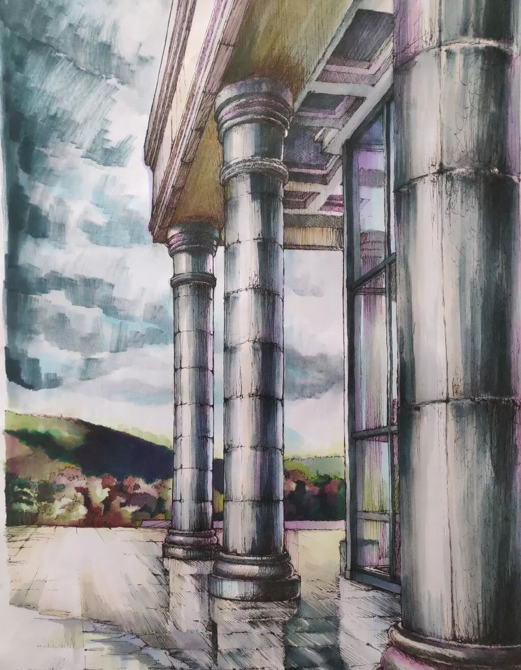 视线从石柱的缝隙穿过