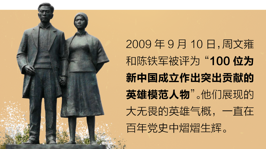 2009年9月10日,周文雍和陈铁军被评为“100位为新中国成立作出突出贡献的英雄模范人物”。他们展现的大无畏的英雄气概,一直在百年党史中熠熠生辉。
