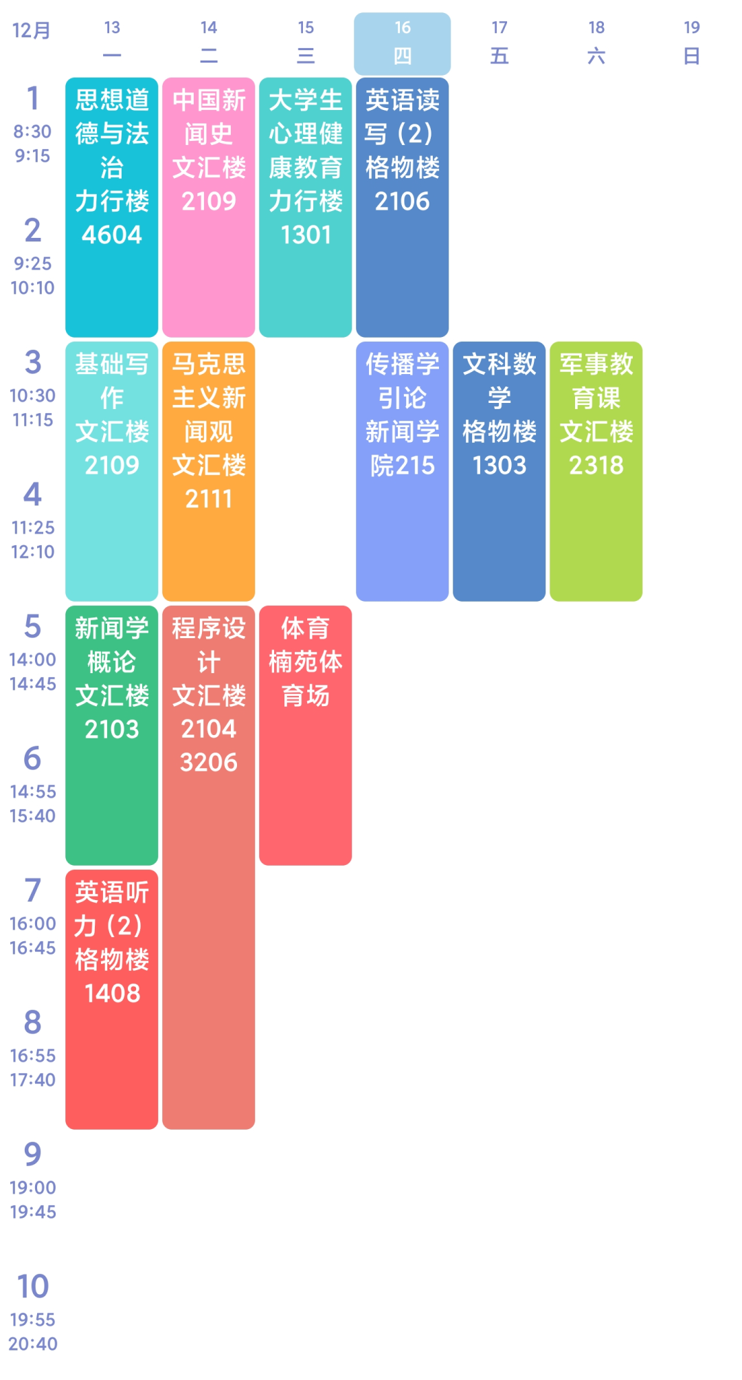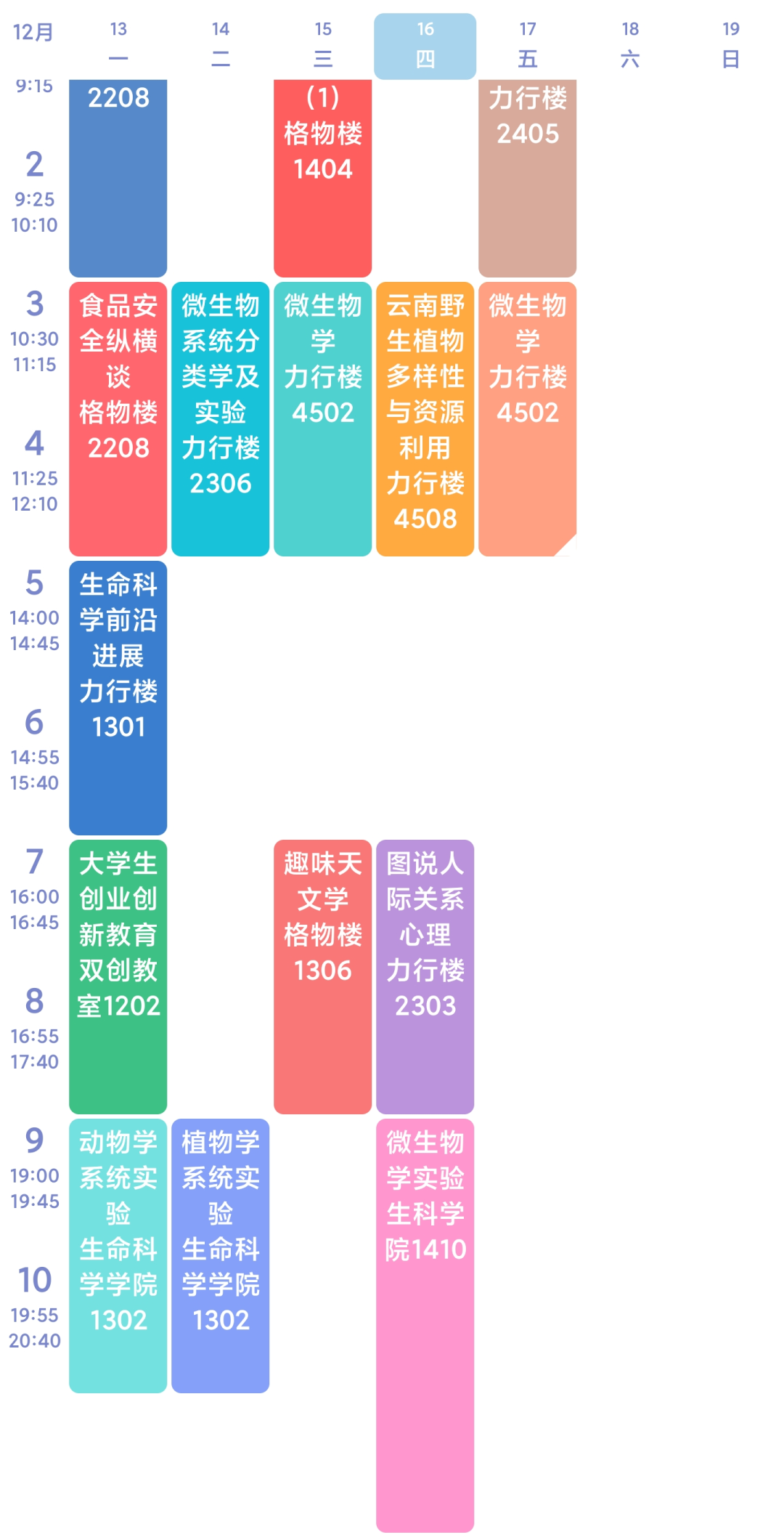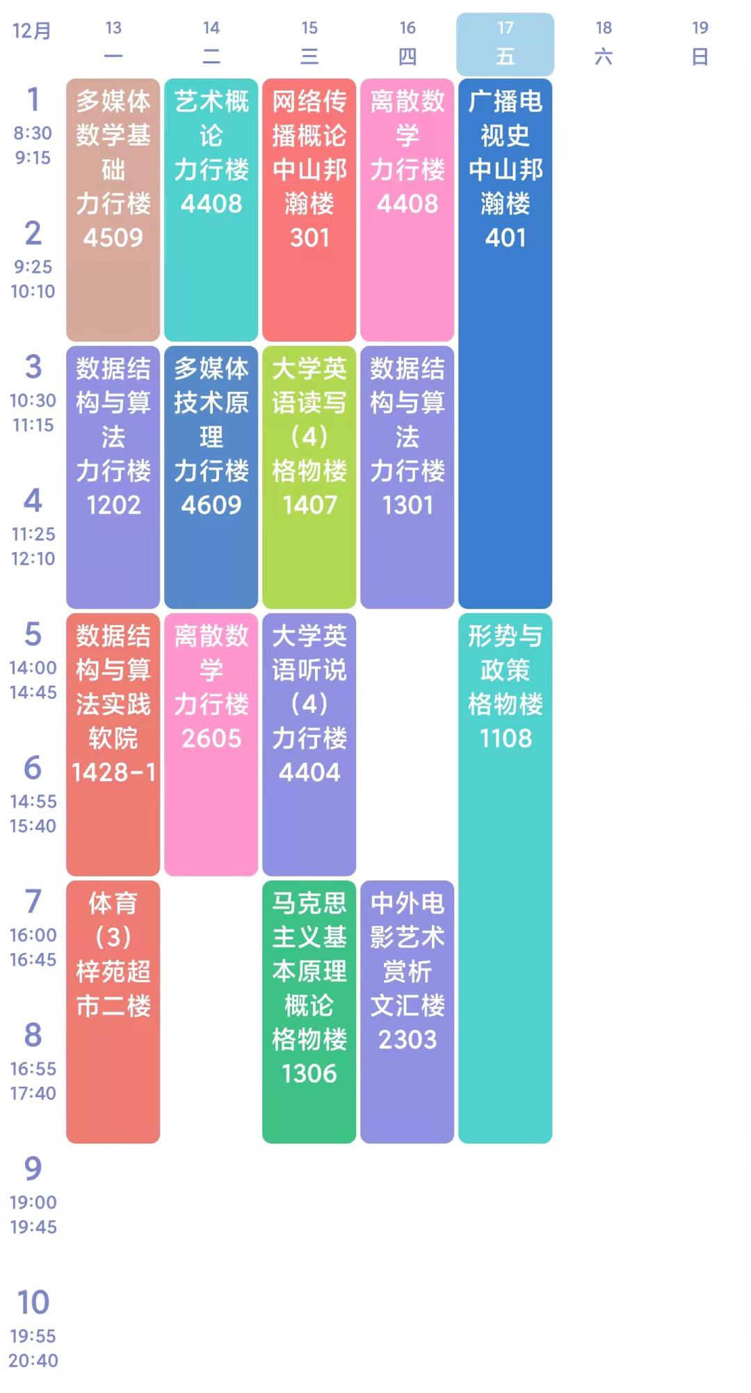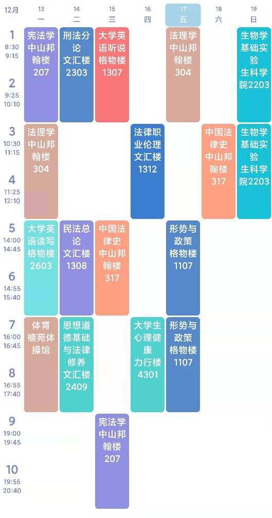 大家的课程表不尽相同