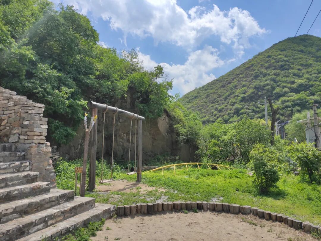 大树下下棋的老人,扛着柴禾下山的老人,饭后村口跳广场舞的老人,在村里的这些天我几乎没有见过年轻人,散步在村中,恍如隔世。从北三环出发,自驾不过90多公里的路程,气温却一下下降了不少。坊口村海拔1000米左右,昼夜温差大,隐逸在山林里,周围没有工厂及城市,这里成为一个天然的避暑胜地。白天的光照很强,但没有潮湿闷热的体感,随意找片树荫,山间的风便送来清凉。入夜后,这里的温度比北京市区低7度左右,即便没有空调也依旧清爽,早起时甚至还要披上件外套。随着人口变迁,坊口村中有许多闲置的老房,虽然年代久远,但房屋结构依然坚固,我住在由这些老房子改造而成的民宿中,因地处京城之西,又安静惬意,民宿取名为“静西谷”。合院式住宿,约上两三家朋友便可独享一方天地,虽然地处这个复古的村庄,民宿内的条件却不亚于星级酒店,儿童活动区,阅读角,开放式餐厅,茶室、烧烤台、屋顶阳台,小型会议室,咖啡厅一应俱全。修旧如旧的装潢处处显现着浓浓的设计感。坐在院中,抬眼看山,低头读书,一本诗集,一餐茶饭,山林的空灵,居所的舒适,仿若误入了桃花源。清晨的坊口村还沉浸在昨夜的雨中,晨云浮在山间,空气异常清新。整个村子似乎还没睡醒,阡陌交通,鸡犬相闻。此时是林中松鼠的盛会,它们在木桩和树梢间轻跳,恍入无人之境。村路中大黄狗们悠闲地散步,远方袅袅炊烟升起,平日生活在城市里的我们,很少有机会看到如此真实的田园生活。沿着村路漫步,穿过一片杏林便是长城,坊口村的长城不同于景区,依然保留着原始的样子,坍塌的城墙,破碎的砖块诉说着昔日的沧桑。这里大概罕有游客到来,山林中几乎看不到垃圾,登顶远眺,层峦叠翠,林木葱郁,即便是正午,山风和杏林也可一解暑热。在村中居住数日,没有什么地方是必须要去的,只享受盘桓在此的清凉与悠闲就是了。村里的老人们都很和善,我带着孩子们和老人谈起这个村子的过往,曾经的水井,曾经的小学校,让孩子们听到一段段不同年代的真实历史。