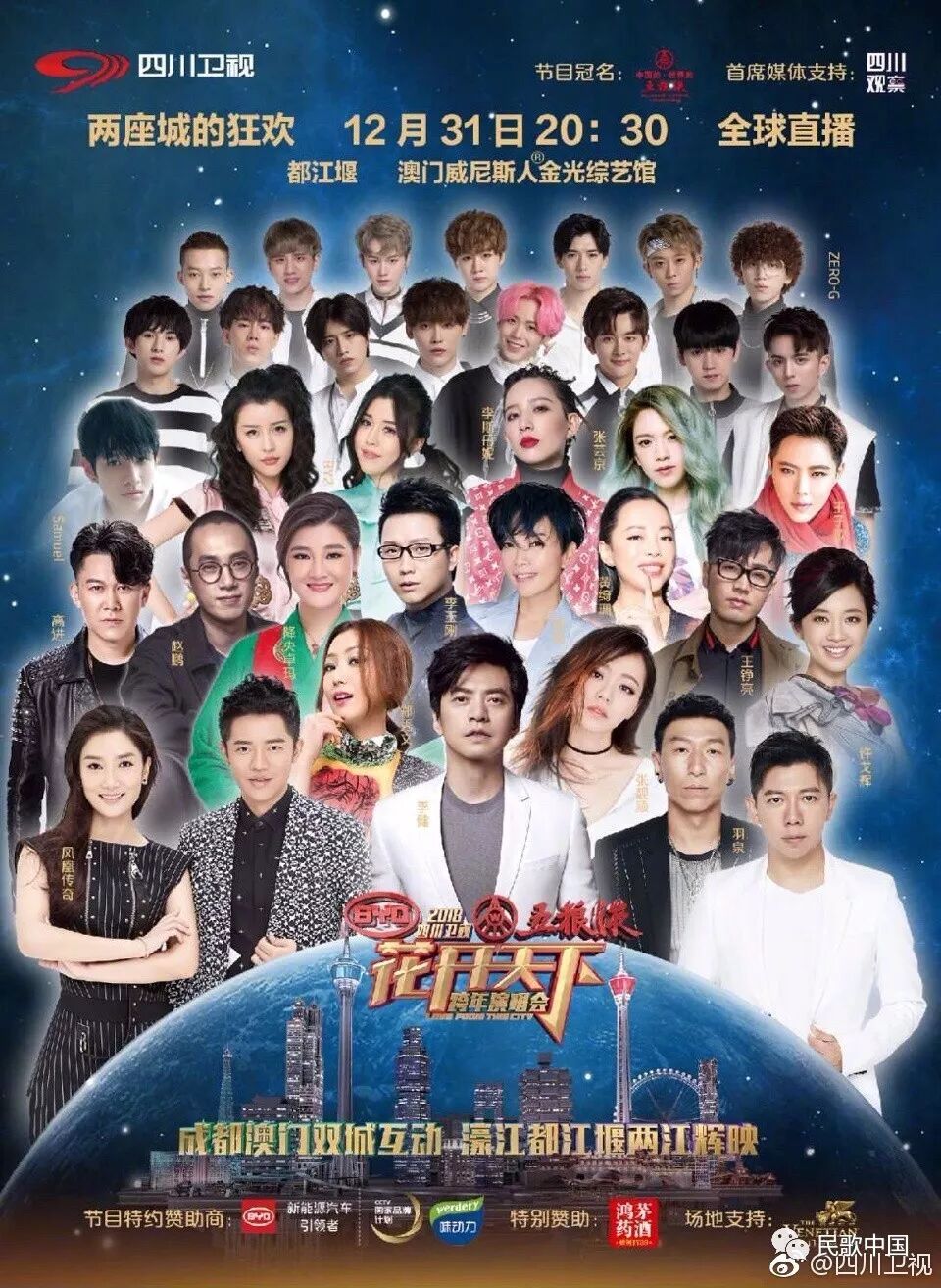 除了非遗特色外,华丽的嘉宾阵容当然是必不可少的,既有才华满满的川籍明星,还有金曲频出的超级大咖。天籁之声李玉刚、灵动歌姬张靓颖、音乐诗人李健、实力歌者陈明、最强组合凤凰传奇、歌坛常青树费玉清等将与您一起在四川卫视跨年。微信关注@民歌中国,12月31日20:30,不见不散~~~·