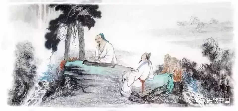 传说琴师伯牙经常在荒山野地弹琴,而只有樵夫钟子期能领会这是描绘“巍巍乎志在高山”和“洋洋乎志在流水”的场景。 从此,两人成为心意相通的至交。子期死后,伯牙痛失知音,摔琴绝弦,终生不操,故有《高山流水》之曲。