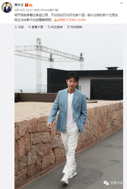 “明天我就穿着这身逛公园,天坛地坛日坛月坛挨个逛!能认出我的前十位朋友,我主动合影外加送精美相框![作揖]#曾毅又没被认出来#”