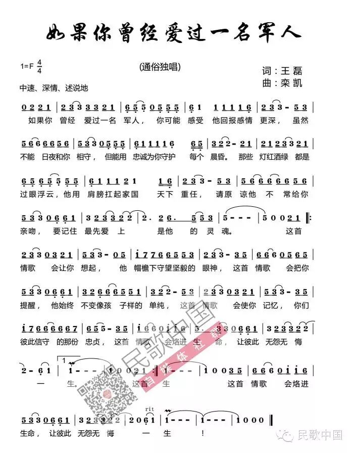 入伍快二十年了,一直想写一首军人的情歌。在2016年春节来临之际这个愿望终于达成了!想来想去而且还是自己来演唱吧,可能情感会表达的更直接些,在这里把这首歌献给我的战友和那些曾经是一名军人和即将成为一名军人的人们!敬礼!——栾凯寄语