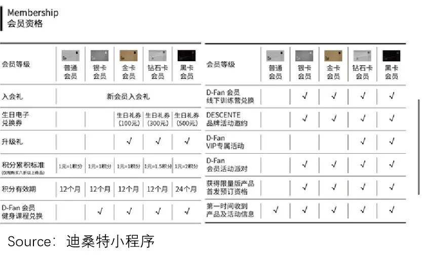以迪桑特来说,在核心用户群体——30-45岁、事业成功的商业人士方面,其切中这类人群注重服务体验的需求,建立了从入门到高级的会员系统。