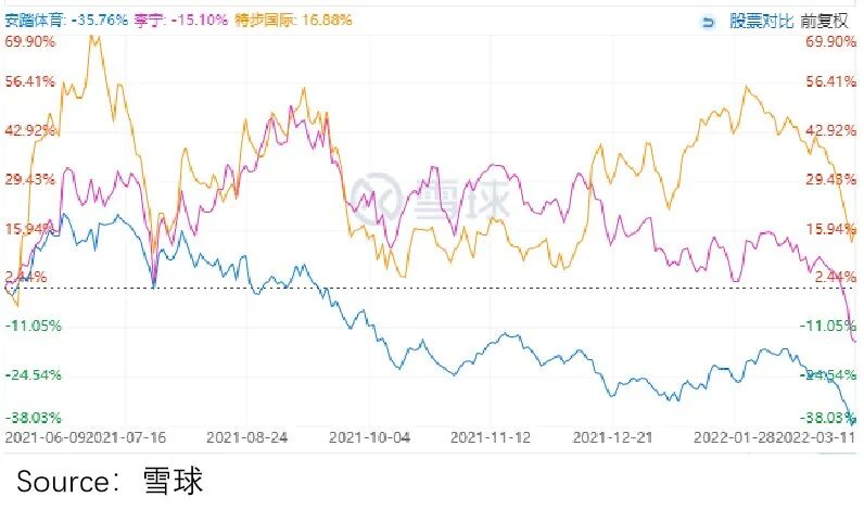 假象被穿透,自然影响了投资者,对安踏的增长预期,股价回撤幅度更大,也就意料之中的事情。