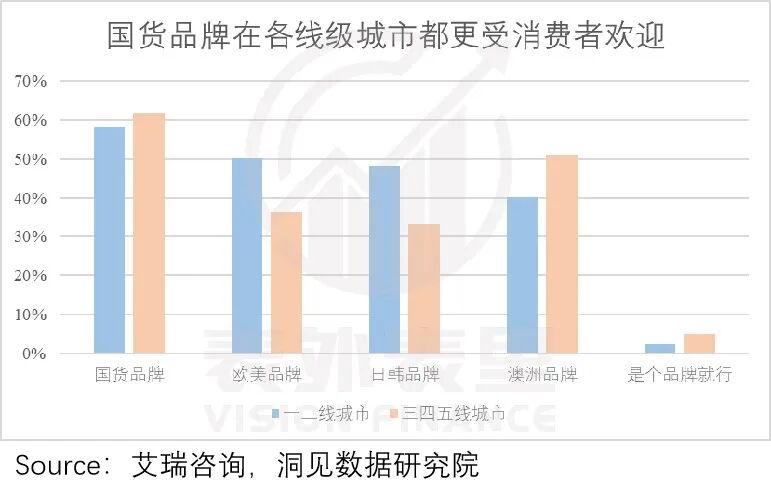 然而当风口出现时,增量往往聚集在以往需求相对空白的地方。也就是说,一二线市场从国际品牌替换到国货的效应最大。