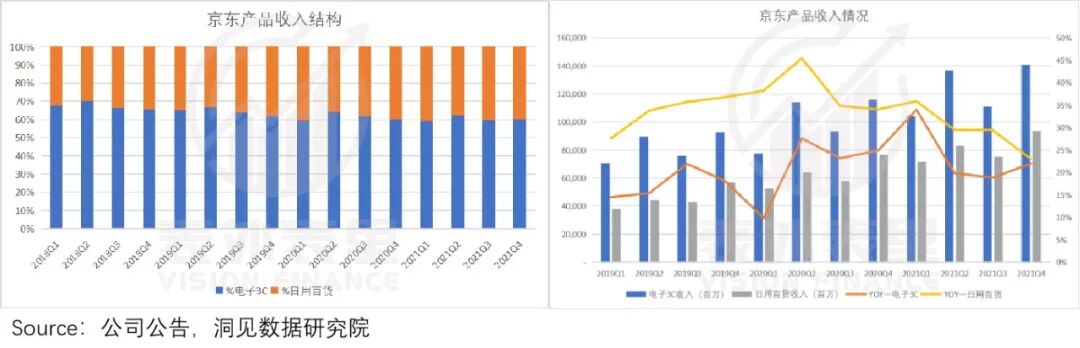 事情确实在如预期发展,可以看到,2019Q1-2021Q4,京东的日用百货品类的收入贡献,从35%提升到了40%。