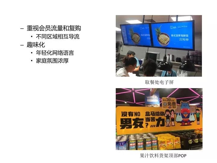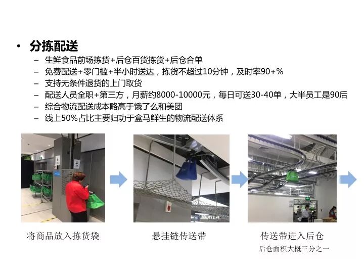 盒马鲜生属于阿里新零售模式探索的先锋部队,为支付宝渗透线下零售业提供助力,并从“生鲜超市+餐饮”新业态进行探索,提升与腾讯京东电商平台的竞争力。借助线下吸引顾客,线上下单配送的流量模式创新,在“好”与“快”两个要点上赢得口碑,成为异军突起的新零售典型。