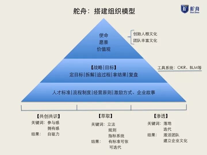 此时的舵舟,经过百家以上的公司研究,和深入的企业服务,我们搭建了自己的服务体系,那就是帮助搭建成长型公司的“组织模型”。我们从核心团队的共创共识入手,帮助一家公司萃取他们的使命愿意价值观,共识拆解战略及目标,以及萃取和优化能够支撑他们战略的人才标准,经营原则,激励体系。这个时候,当再次想去审视张一鸣和他的字节跳动,我们有了框架性的视角。但是打入字节跳动内部,以及约到张一鸣本人,依然是一件很难的事儿。