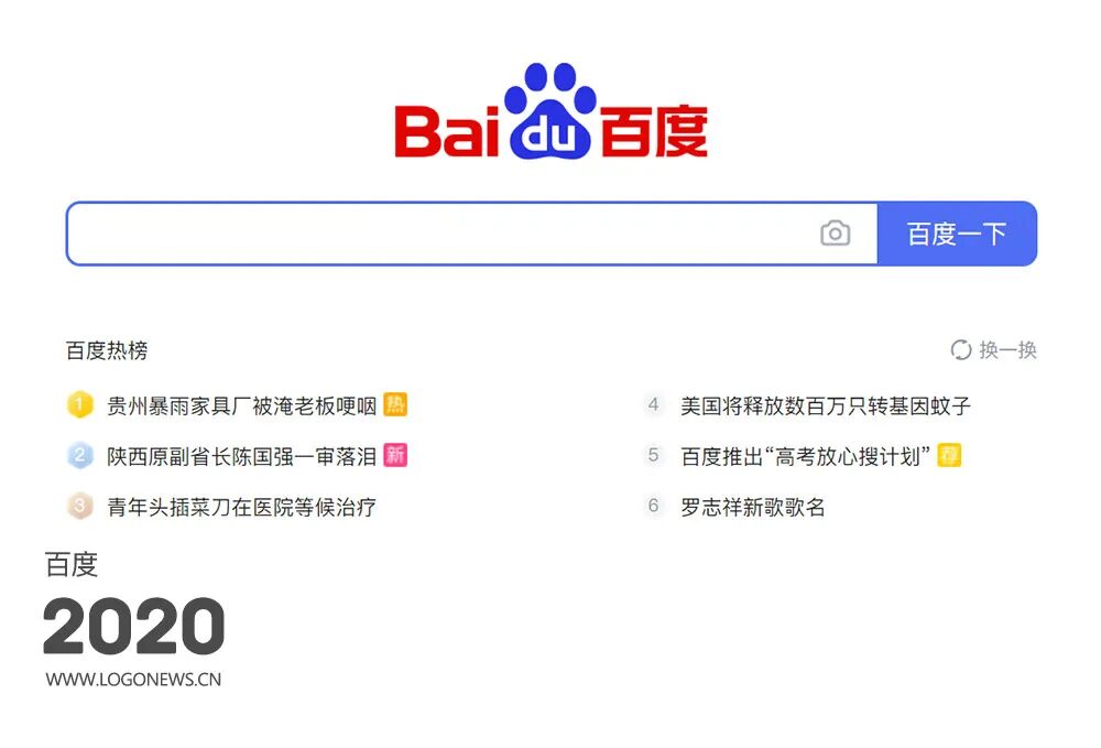 2020年4月前后,百度首页再次大范围改动,搜索框和搜索按钮增加了圆角效果,搜索按钮的蓝色变得更深(#4e71f2)。搜索的下方出现了百度热榜等近期热门新闻链接。