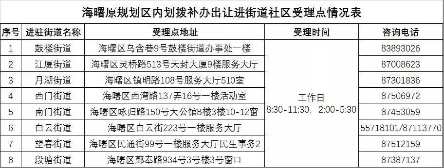 海曙区受理点情况表