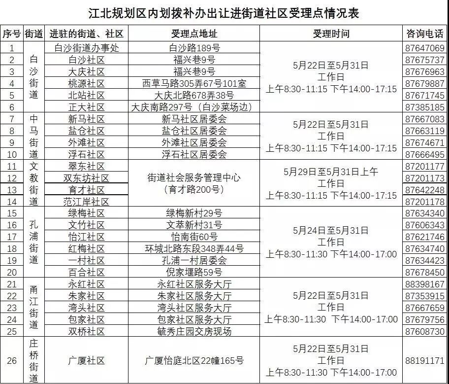 江北区受理点情况表