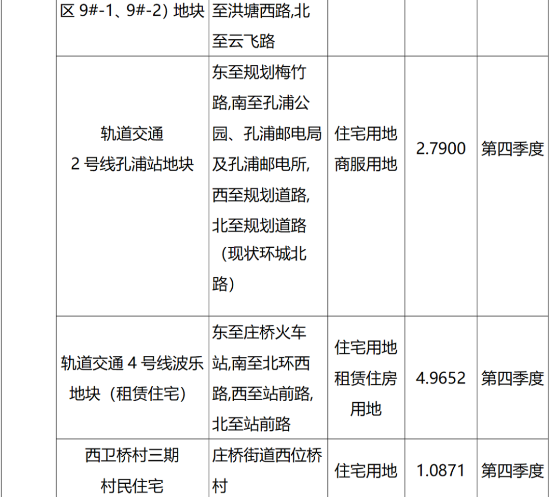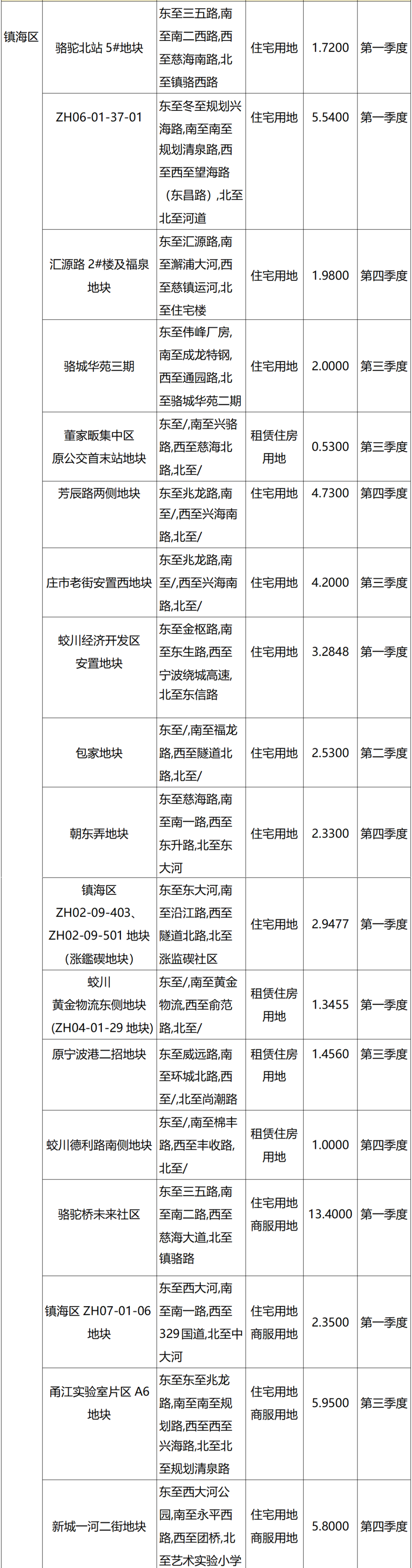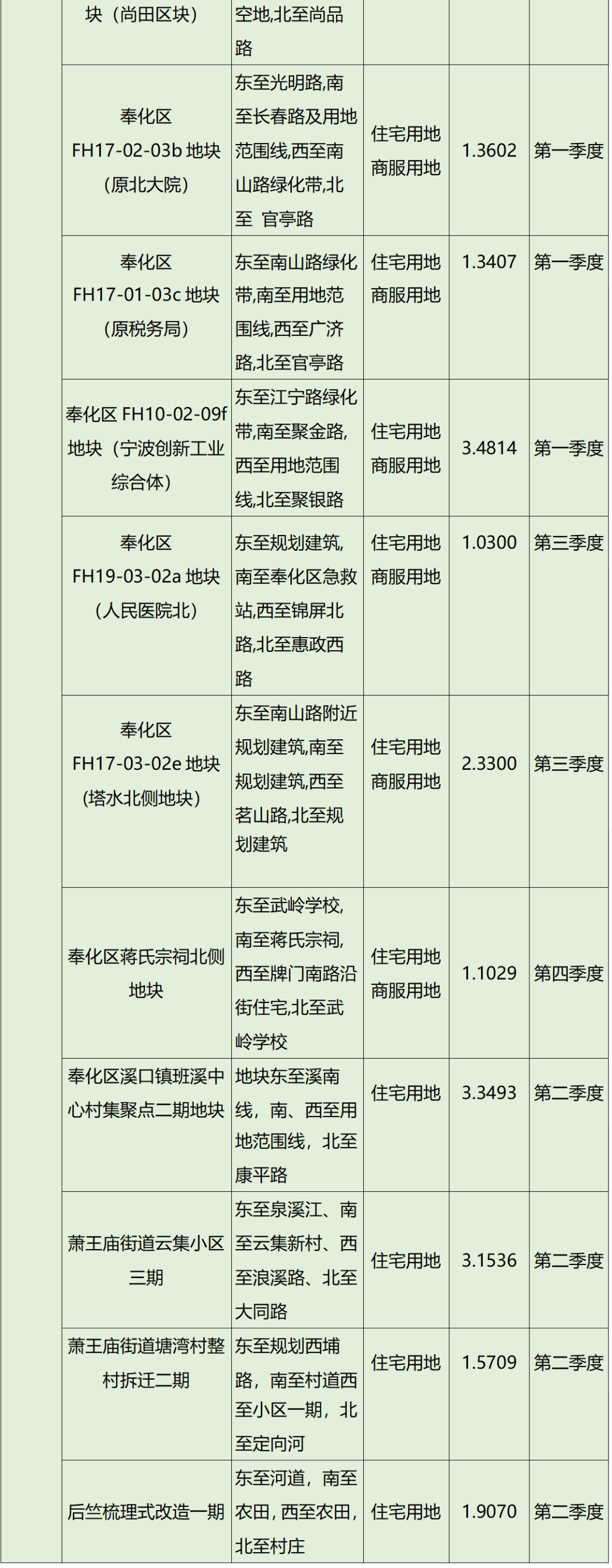 各类宅地清单如下(其中一部分已经在今年第一批集中供地时成交):