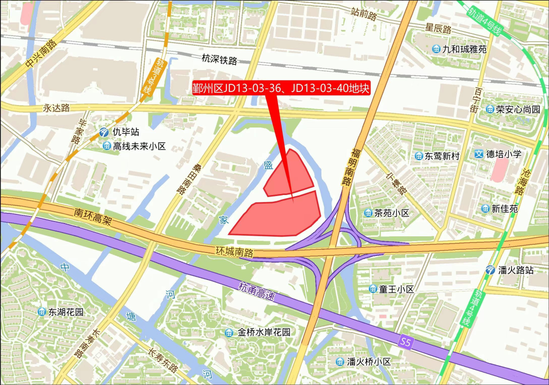 这块地在仇毕,就是之前被说不怎么好的位于环城南路高架和福明路交叉口西北侧的鄞州区JD13-03-36、JD13-03-40地块(仇毕区块)。