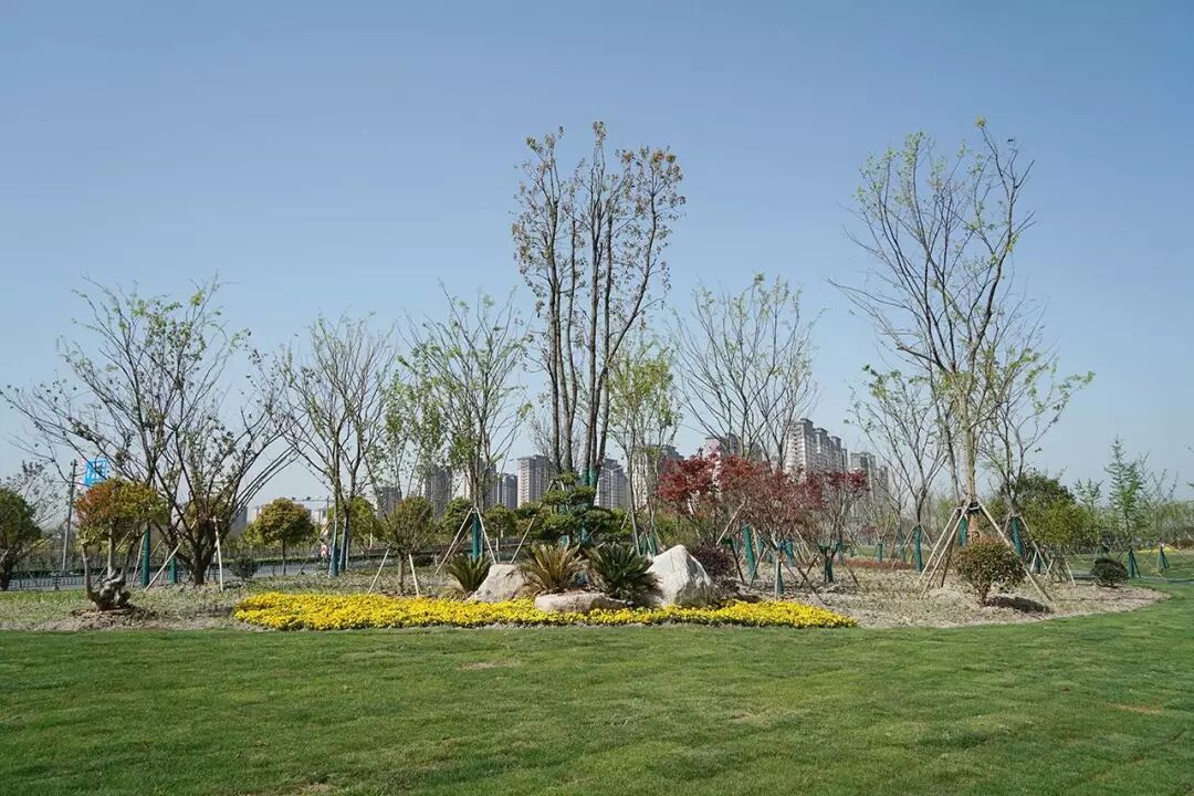 种植乔灌木2100株,小苗40万余株,品种达50多种,包括乌桕、香樟、朴树、栾树、榉树、银杏、五角枫、桂花、紫玉兰、樱花、海棠、苏铁等。