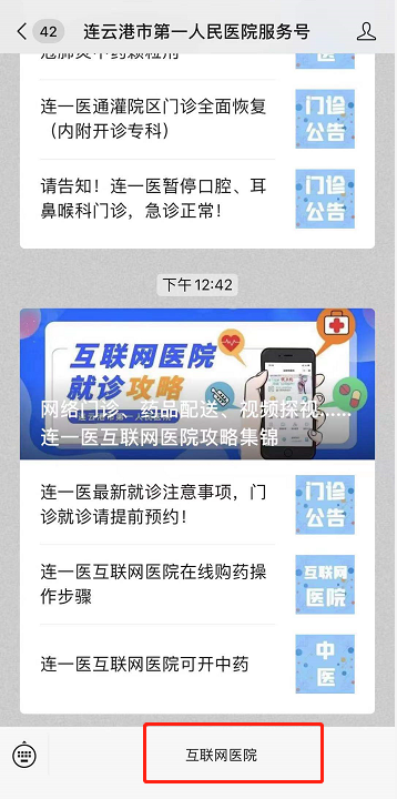 关注“连云港市第一人民医院服务号”,识别下方二维码