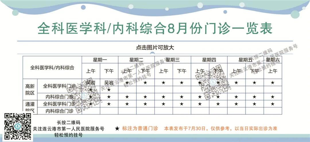 2.连云港市第一人民医院服务号预约: