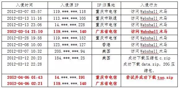 1、通过对日志记录分析,有多处ip访问了webshell后门,其中ip为184.***.***.25有下载服务器打包文件,该ip可能为相关vpn代理服务器ip,ip为14.***.***.191有成功下载tuo.zip数据文件。