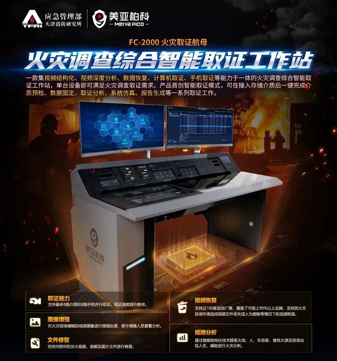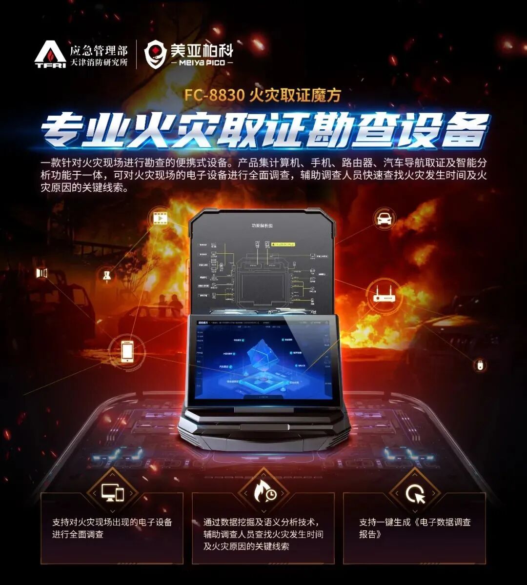 随着计算机技术的高速发展,电子数据在火灾调查中发挥着越来越重要的作用。2021年,作为国内电子数据取证行业龙头的美亚柏科,与应急管理部天津消防研究所建立了合作关系,双方在火灾调查智能化装备展开全面合作,目前已联合开发了火灾视频勘查箱、火灾取证魔方、火灾取证航母等专项设备,系列产品已在今年全国火灾调查岗位练兵比武频频亮相,获得了部局领导、局处长、总队领导以及专家的肯定和好评。