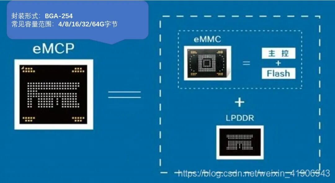 eMCP: 结合eMMC和LPDDR(Low Power Double Data Rate SDRAM,低功耗内存)而成。其常见容量为:4~64G字节,常见封装(如图11所示)为:BGA-254,一般用于存储嵌入式操作系统、应用信息、日志信息、配置信息、事件信息等。当前比较少见,应用于部分汽车物联网设备中,可能在未来使用中渐渐增多。