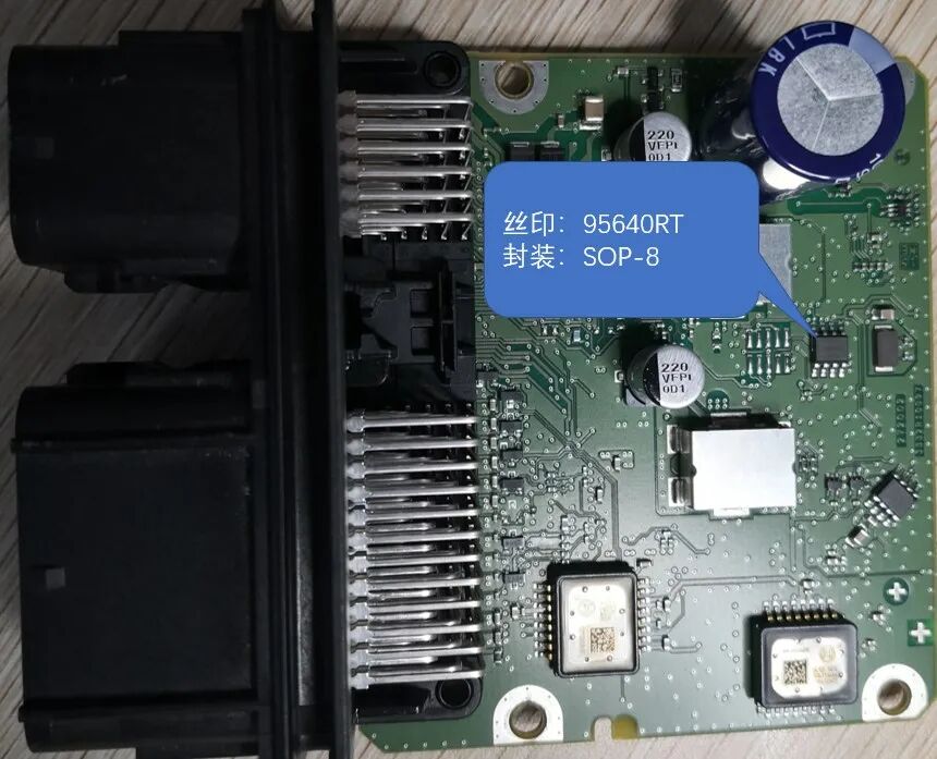 图2为一款EDR中使用EEPROM芯片的具体示例,不同设备,不同结构、外观、芯片型号,位置均会有所差异,在此处仅进行示例说明: