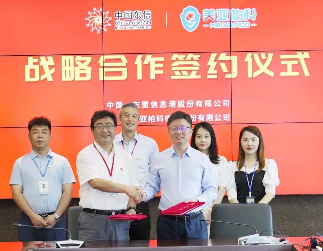 2022年7月25日,厦门市美亚柏科信息股份有限公司(以下简称“美亚柏科”)同中国-东盟信息港股份有限公司(以下简称“中国东信”)正式签署战略合作协议。美亚柏科党委书记、总经理申强,中国东信联席总裁李珩等领导出席签约仪式。
