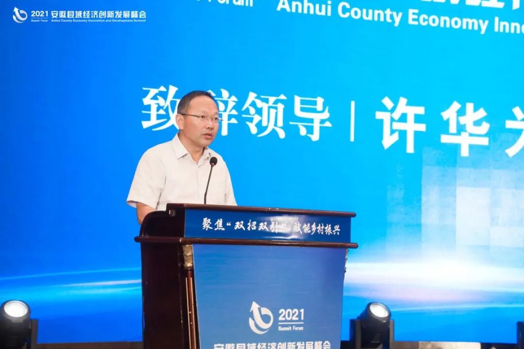 2021安徽县域经济创新发展峰会举办地领导庐江县委书记许华为致辞。