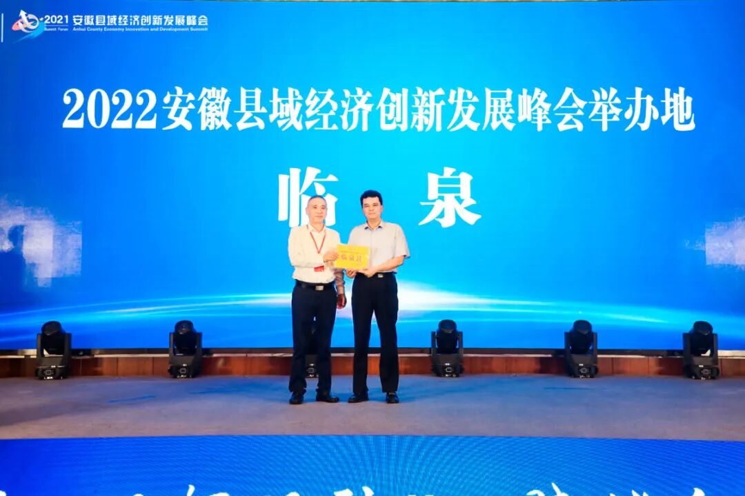 在峰会上,正式宣布2022安徽县域经济创新发展峰会将在安徽临泉县举办。