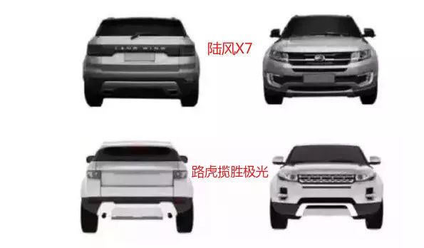 路透社等多家外媒报道,近日北京朝阳区法院裁定,中国江铃汽车生产的陆风X7汽车,有5项车型设计是直接抄袭了路虎揽胜极光的设计,在消费者中造成混淆,下令江铃汽车必须立即停产。