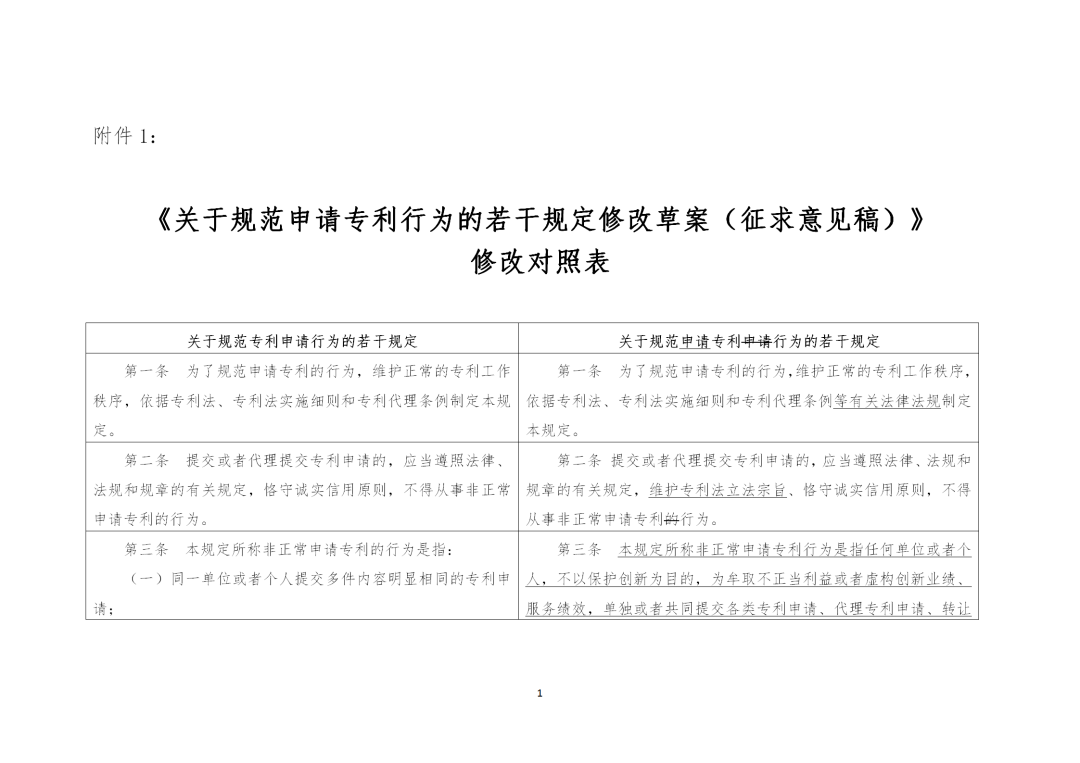 为增强立法公开性和透明度,提高立法质量,国家知识产权局将起草的《关于规范申请专利行为的若干规定修改草案(征求意见稿)》及其起草说明公布,征求社会各界意见。公众可以登录司法部中国政府法制信息网、国家知识产权局官网或者关注国家知识产权局微信公众号,查看征求意见稿及其起草说明。有关单位和各界人士可以在2021年6月6日前,通过以下四种方式,围绕征求意见稿的修改完善提出具体意见:一、登录中华人民共和国司法部 中国政府法制信息网(http://www.moj.gov.cn、http://www.chinalaw.gov.cn),进入首页主菜单的“立法意见征集”栏目提出意见。二、通过电子邮件将意见发送至:tiaofasi@cnipa.gov.cn。四、通过信函方式寄至:北京市海淀区西土城路6号国家知识产权局条法司审查政策处,邮编100088(请于信封左下角注明“关于规范申请专利行为的若干规定”)。附件1:关于规范申请专利行为的若干规定修改草案(征求意见稿)附件2:《关于规范申请专利行为的若干规定修改草案(征求意见稿)》的说明![]()